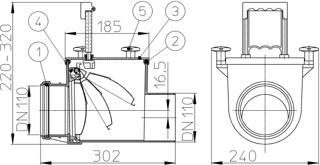 Механический магистральный канализационный затвор DN110 с автоматической заслонкой из нержавеющей стали, ручным затвором и прочисткой.