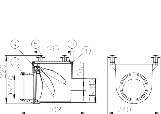 Механический магистральный канализационный затвор DN110 с автоматической заслонкой из нержавеющей стали и прочисткой.