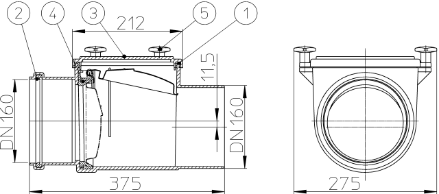 Механический магистральный канализационный затвор DN160 с автоматической заслонкой из нержавеющей стали и прочисткой.