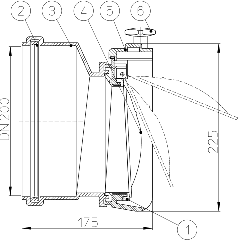 Затвор DN200 с заслонкой из нержавеющей стали и муфтой для труб из синтетического материала.