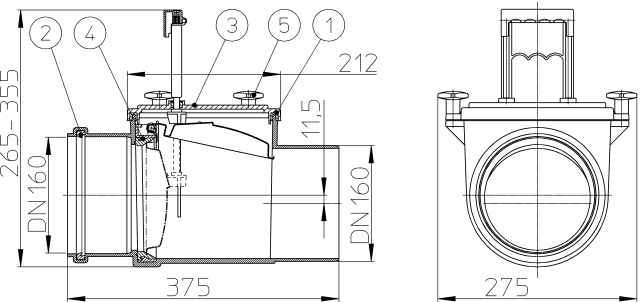 Механический магистральный канализационный затвор DN160 с автоматической заслонкой из нержавеющей стали, ручным затвором и прочисткой.