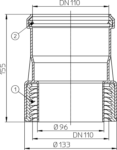 Переходник HL9/1 предназначен для соединения канализационного оборудования из пластика, а также безнапорной канализационной трубы из ПВХ или ПП со стальной трубой или с чугунной безраструбной трубой (SML).