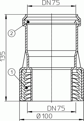 Переходник HL9/7 предназначен для соединения канализационного оборудования из пластика, а также безнапорной канализационной трубы из ПВХ или ПП со стальной трубой или с чугунной безраструбной трубой (SML).