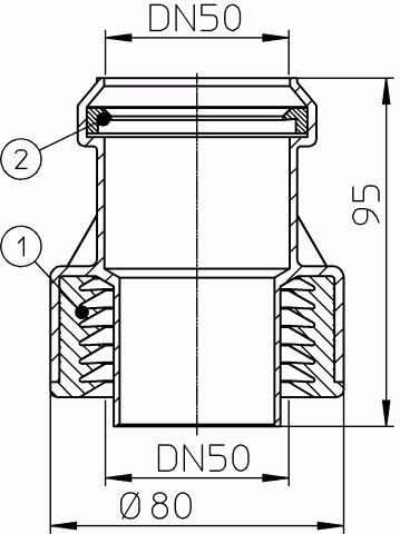 Переходник HL9/50 предназначен для соединения канализационного оборудования из пластика, а также безнапорной канализационной трубы из ПВХ или ПП со стальной трубой или с чугунной безраструбной трубой (SML).